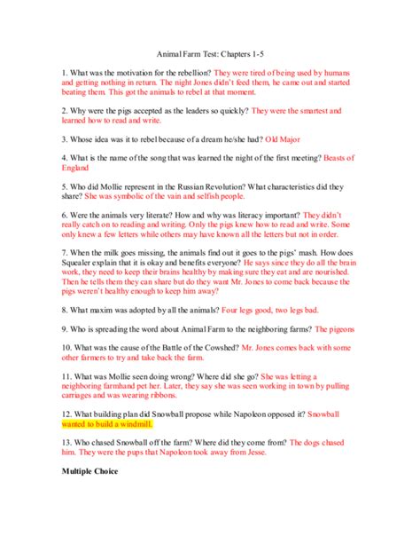Read Online Animal Farm Test Chapters 1 5 Answers PDF